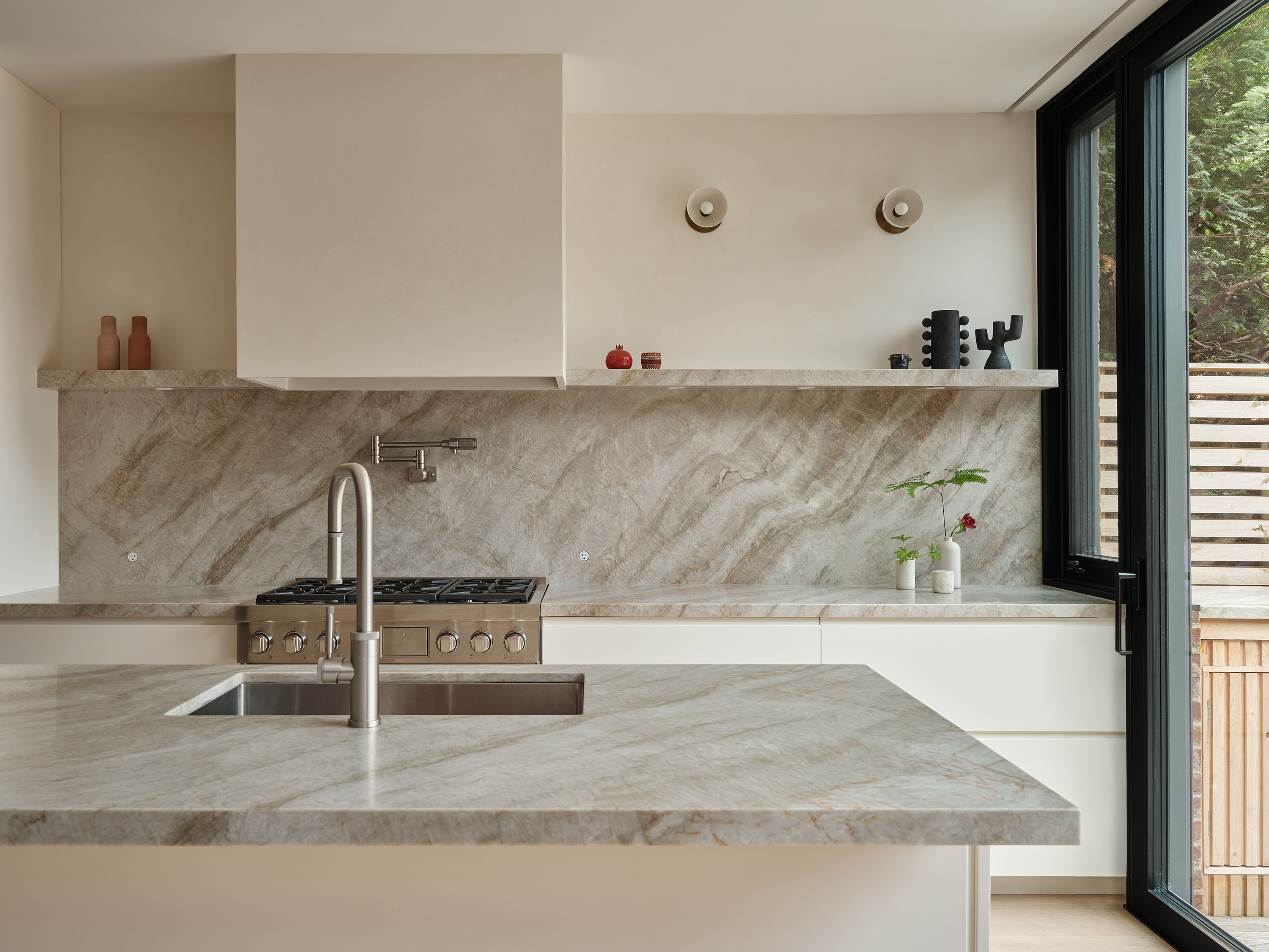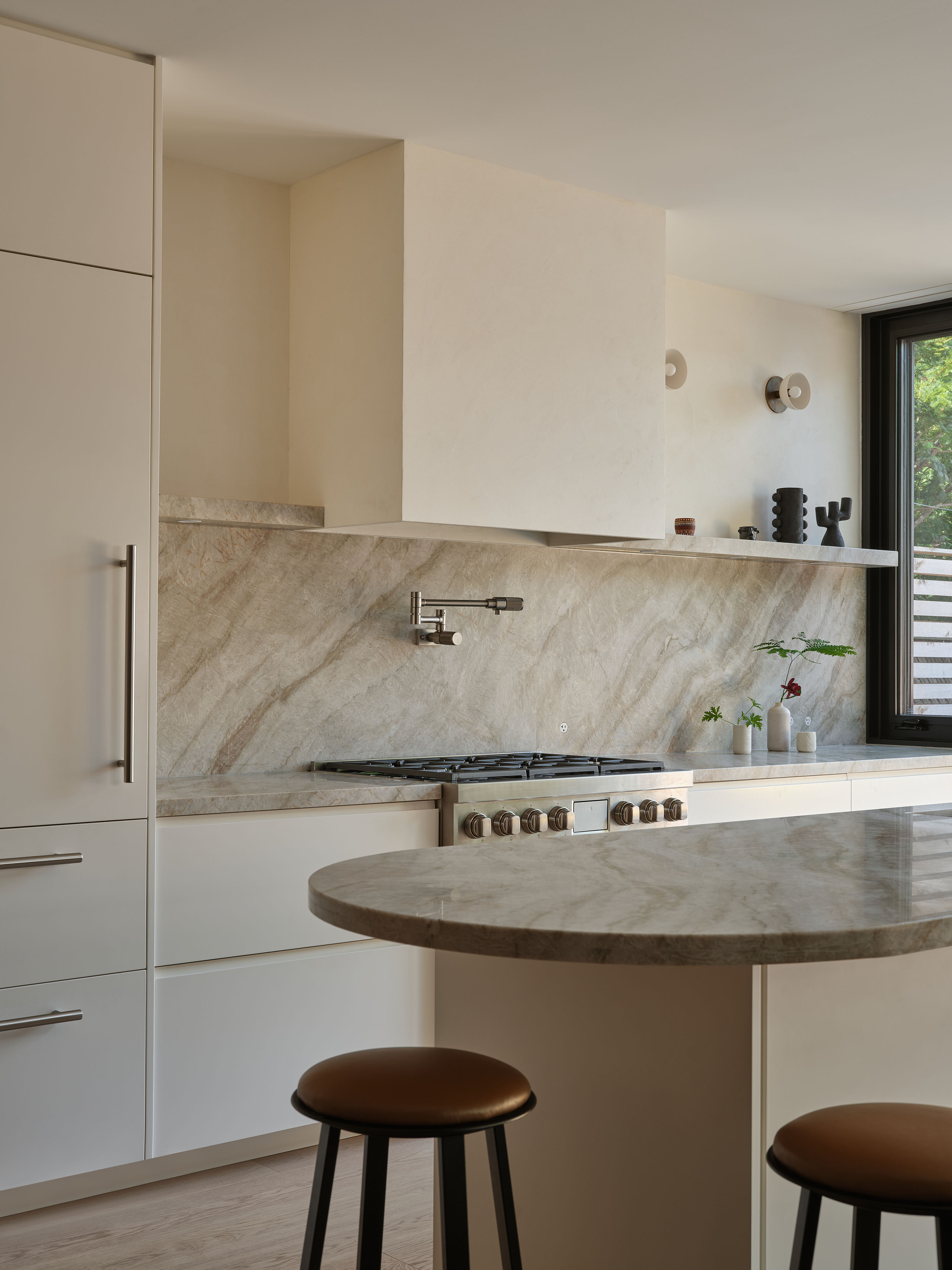 A full interior refresh for a High Park residence, this project pairs a clean contemporary layout with the understated luxury of Taj Mahal quartzite. The material palette brings warmth and cohesion throughout the home, resulting in a serene and sophisticated atmosphere.